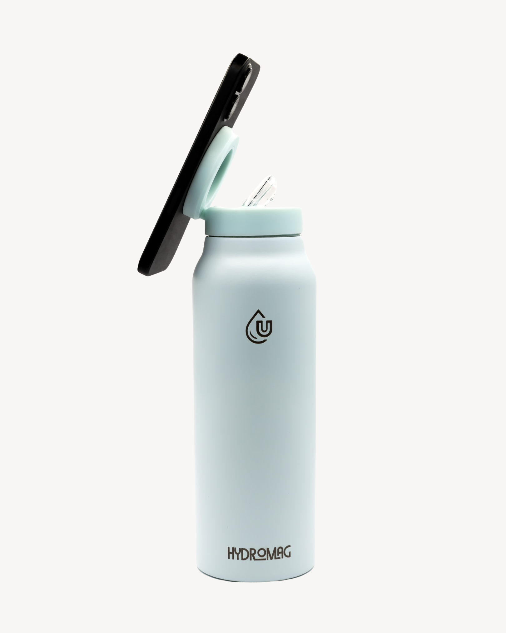 Hydration meets technology with HydroMag the 710ml water bottle featuring a magnetic lid that keeps your phone close and your drink always within reach.